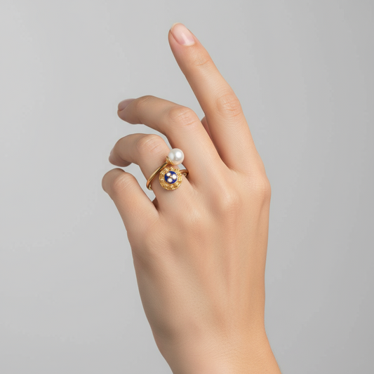 Enamel Flower Ring with Pearl [Gold Plated Silver]