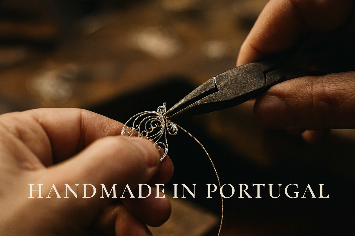 Our pieces are born from the centuries-old Portuguese art of filigree, where thin strands of gold and silver are twisted, coiled, and soldered into breathtaking lace-like designs. Each jewel is a testament to patience, artistry, and heritage.