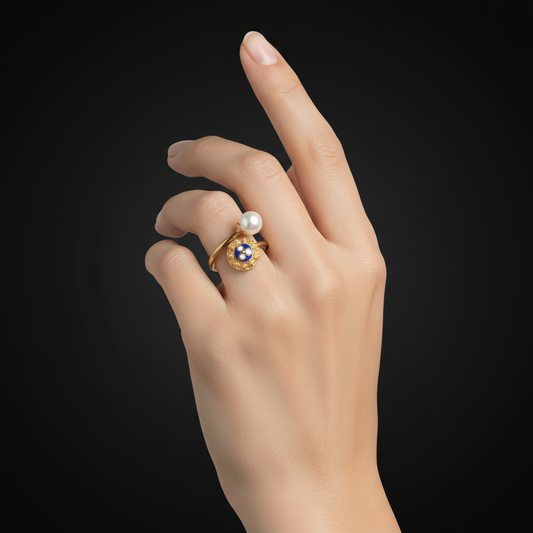 Anel de Flor de Esmalte com Pérola [Prata Dourada]